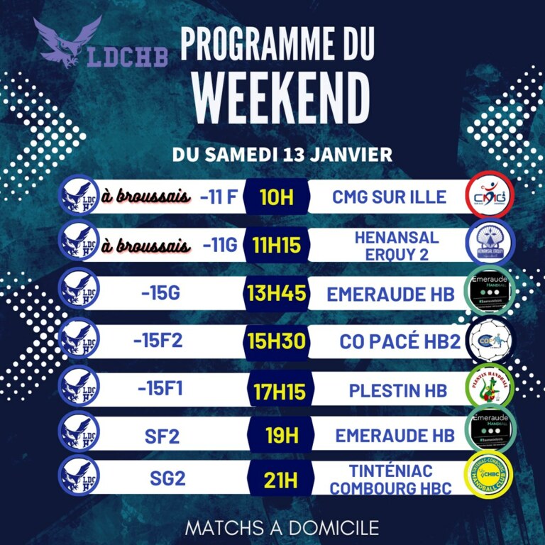 Planning du 13 Janvier